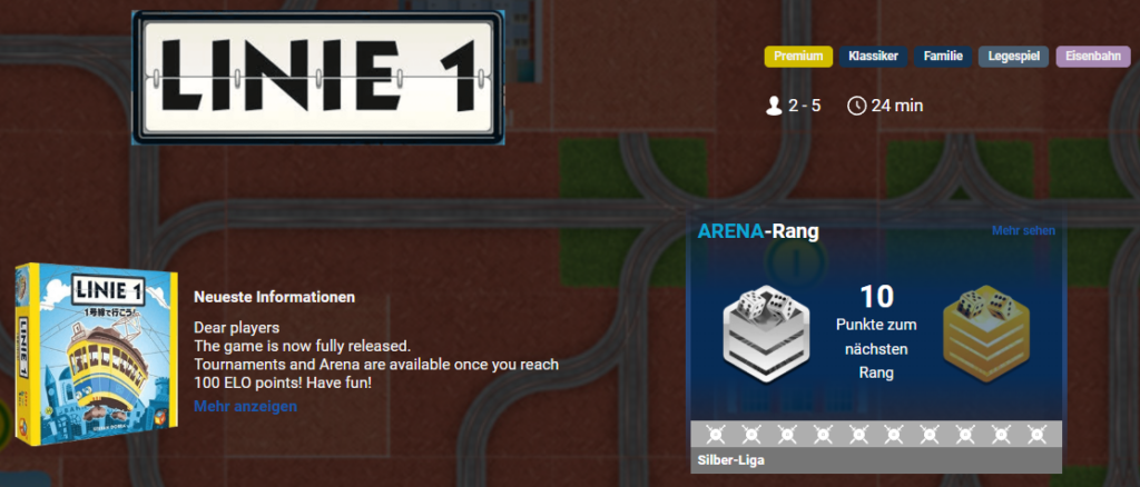 Mein Spiel Linie 1, das auch als Streetcar bekannt ist und mittlerweile als Klassiker gilt, ist jetzt auch auf BGA verfügbar. Die Grafik wurde von der neuen japanischen Ausgabe von Rigoler zur Verfügung gestellt.